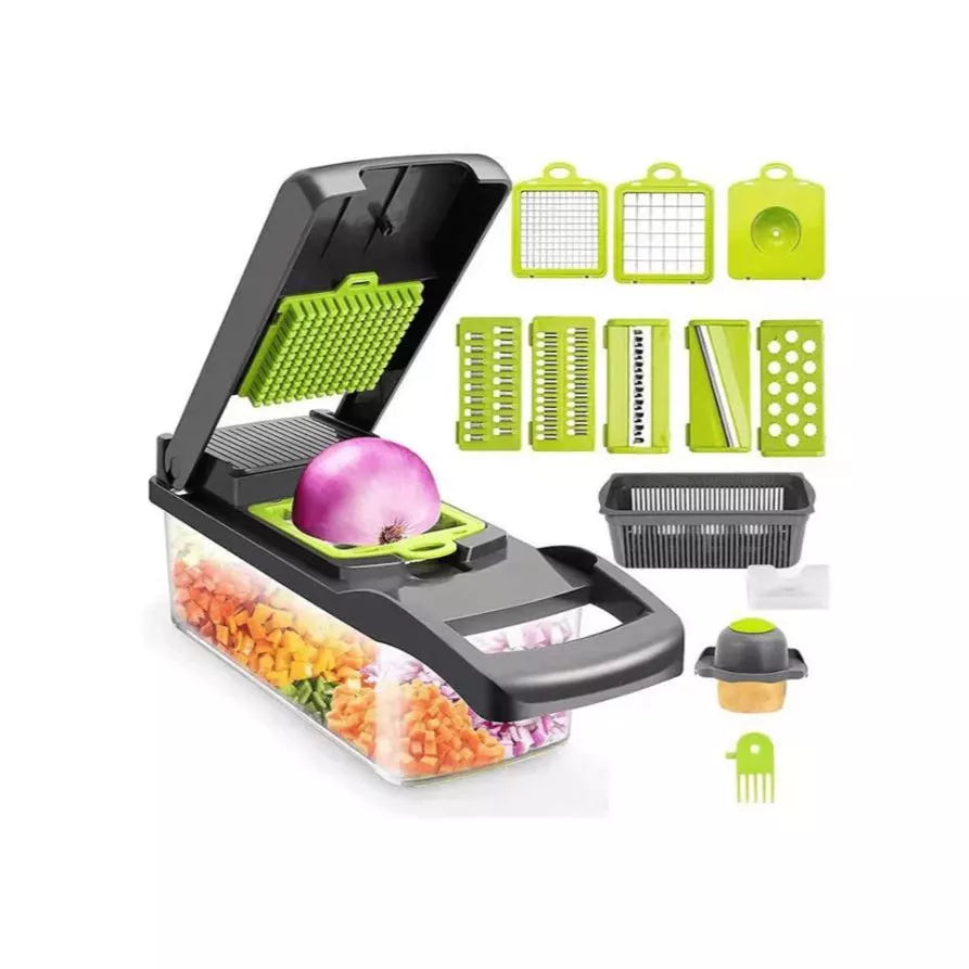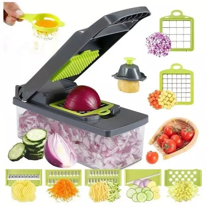 Transforme sua rotina culinária com este aliado indispensável! Peça já o seu Cortador Multifuncional de 16 Peças e facilite o preparo das suas refeições com estilo e eficiência.