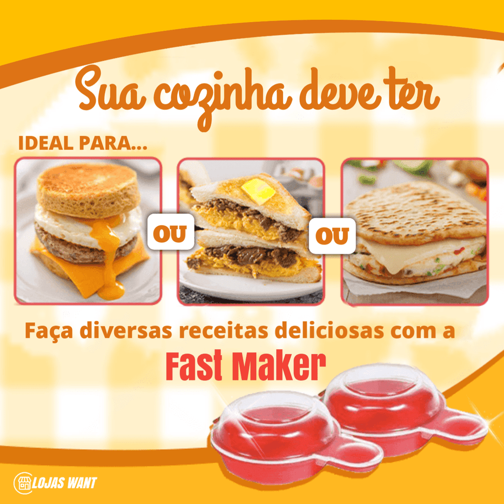 Projetado para qualquer ocasião o Fast Maker é de fácil utilização, assim sendo qualquer pessoa é capaz de produzir um lanche delicioso, tem como principal objetivo a agilidade e praticidade sem a utilização de gorduras na refeição do dia a dia.