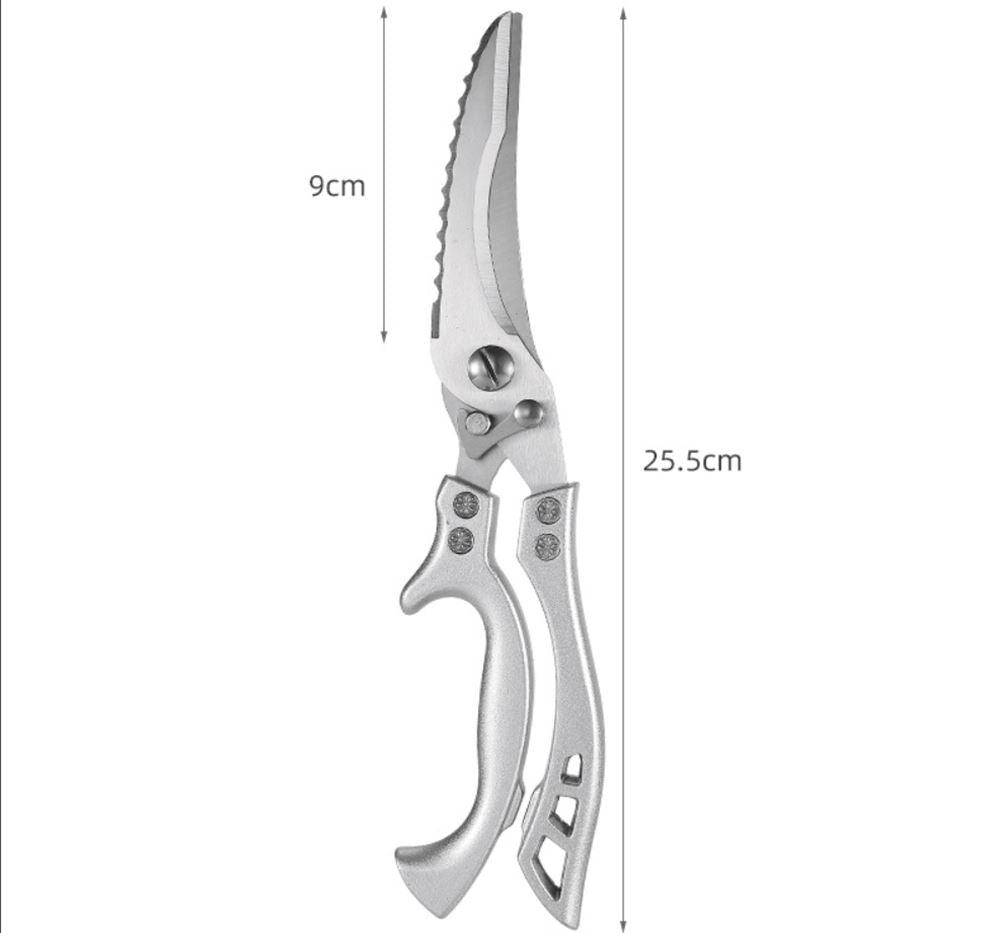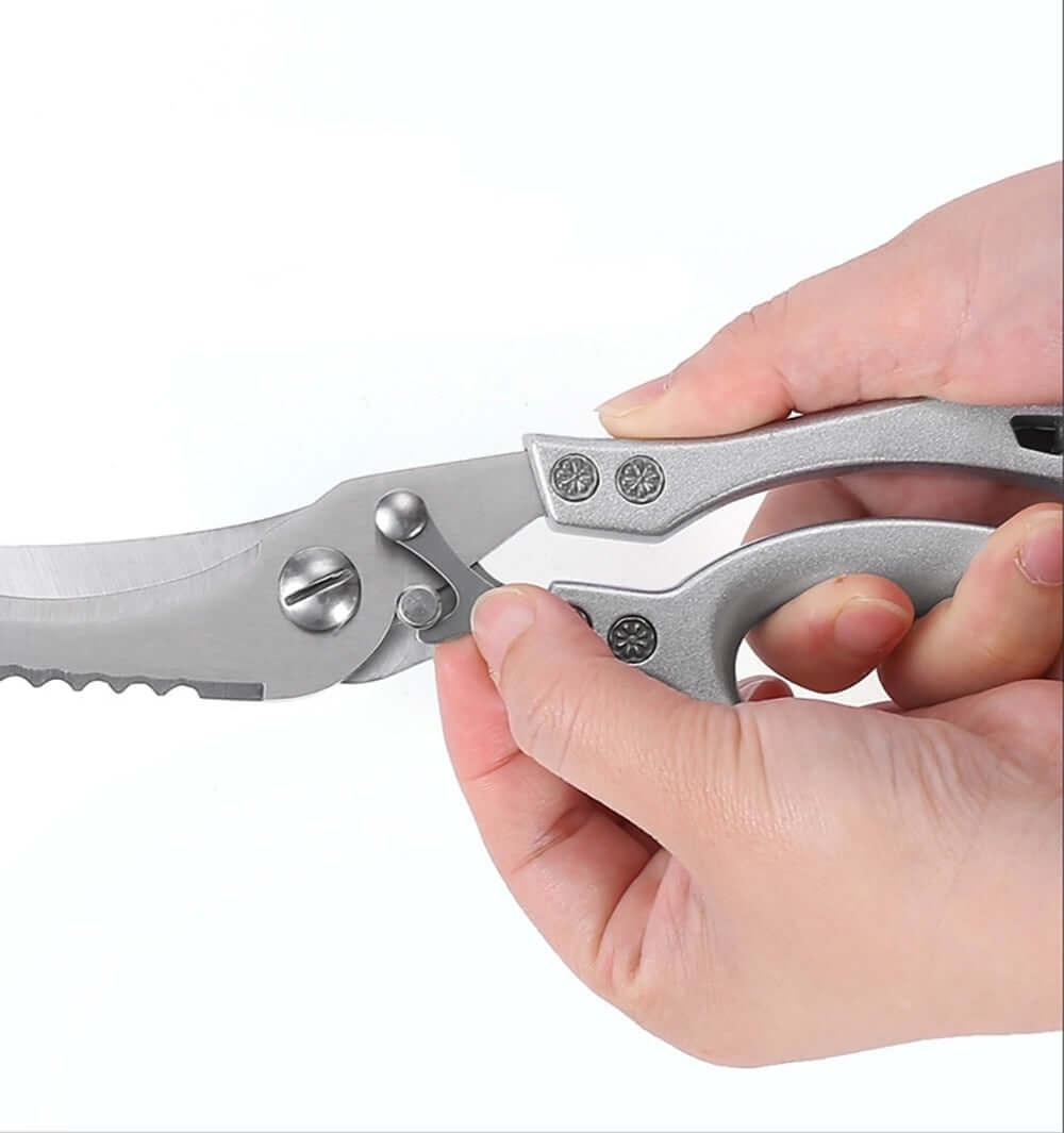 ✅ Tesoura multiuso afiada para carne, legumes e ossos.